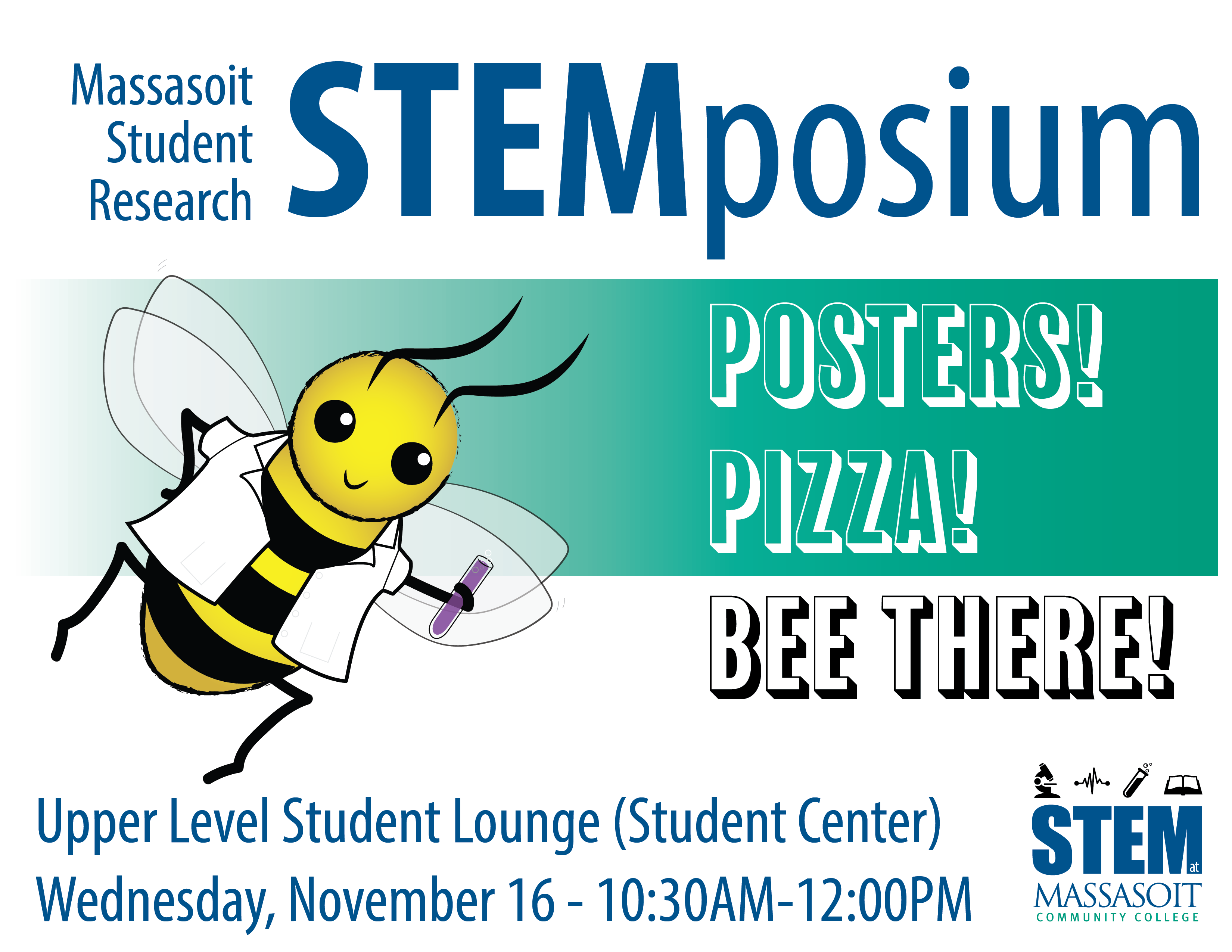 Join us for our annual STEMposium! View our STEM students’ research posters and learn about the great things going on in the Science & Math Division at Massasoit; refreshments provided!