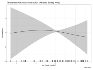 One of the projects that our data science-focused interns have been working on on is using a General Additive Mixed Model (GAMM) to investigate the large amount of data we have collected over the past ten years. The benefit of a GAMM is that you can view the effects of each of the different independent variables on the dependent variable. This is incredibly useful for our study which has non-linear attributes; for example, how active bees are over the course of a year, and when considering other variables such as the weather. These variables are normal and wouldn’t indicate a significant decrease in the abundance of wild bees. GAMMs work better than linear or polynomial regression to understand more complex patterns in the data, which are common in ecological studies.